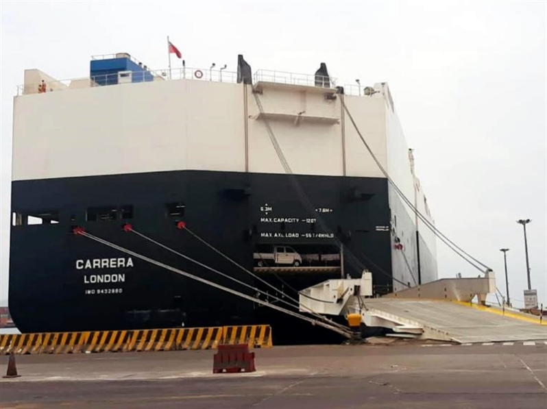 El martes 21 de junio, el car carrier “Carrera”, se convirtió en el primero de la línea naviera ZIM en recalar en el Muelle Norte del Puerto del Callao. Proveniente de Yokohama, Japón, arribó con un total de 2.867 vehículos nuevos. La recalada fue posible gracias a las obras de modernización- recientemente culminadas- del Muelle Norte como puerta exclusiva para carga rodante.