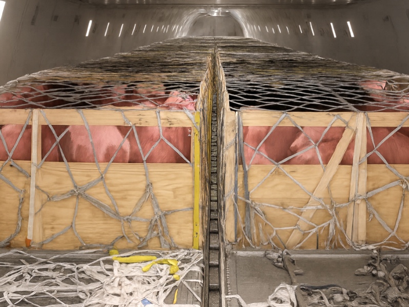 El transporte aéreo de animales vivos exige condiciones especiales para garantizar su bienestar. Para esta operación, Intradco Global diseñó cajas de madera a medida equipadas con sistemas de agua de gran capacidad, con el fin de mantener la comodidad y la hidratación de los animales durante el vuelo.