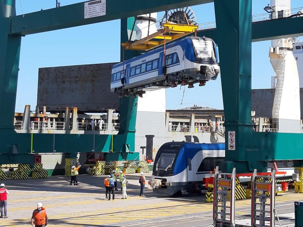 Durante la jornada también se están realizando las tareas de desembarque de cuatro trenes nuevos que operarán en el servicio Rancagua - Estación Central, los que fueron transportados por el buque “Chipol Taihu”, que zarpó desde Chinqa en noviembre pasado con los 12 vagones que componen estos nuevos trenes.