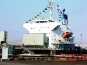 En el puerto de Caldera la empresa minera del acero Santa Fe Mining realizó su primer embarque de producción minera en un acto oficial en el cual se destacó la presencia de los capitales extranjeros invertidos en la región de Atacama.