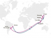 En la ruta hacia el este, la línea naviera informó que Shanghái será integrado como nuevo puerto de recalada, mientras que Hong Kong será removido del itinerario y reemplazado por Cai Mep.