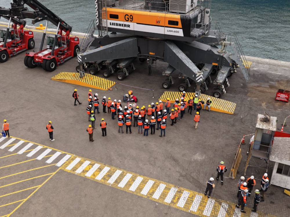 El primer equipo incorporado corresponde a una grúa Liebherr LHM 600, con capacidad de levante de 154 toneladas y un alcance que le permite atender naves con hasta 20 filas de contenedores.