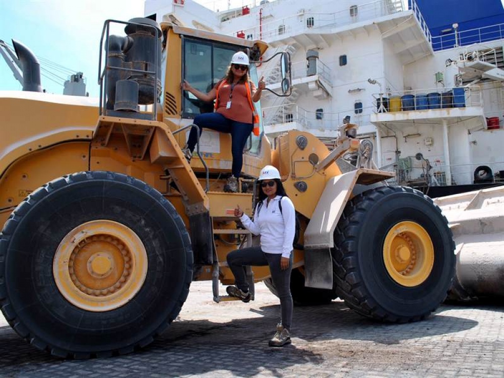 Mónica Zúñiga, de 33 años y Karol Mora, de 29 años, participaron en un programa de capacitación en operaciones de equipo pesado y fueron probadas para operar cargadores frontales al interior del terminal marítimo.