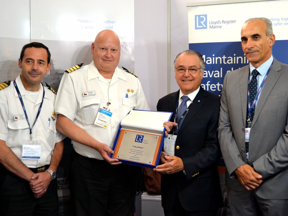 Lloyd’s Register, en el marco de Exponaval Trans-Port 2016, llevó adelante este 1 de diciembre una significativa ceremonia en la que entregó una placa de reconocimiento con la que dio por finalizado el proceso de Aceptación en Clase por seis años del buque “Caldera”, que se convirtió en el decimotercero en ser clasificado de una serie de 16 patrulleros construidos por Asmar para la Armada de Chile, como parte  del “Proyecto Danubio IV” que se inició en el año 2005.