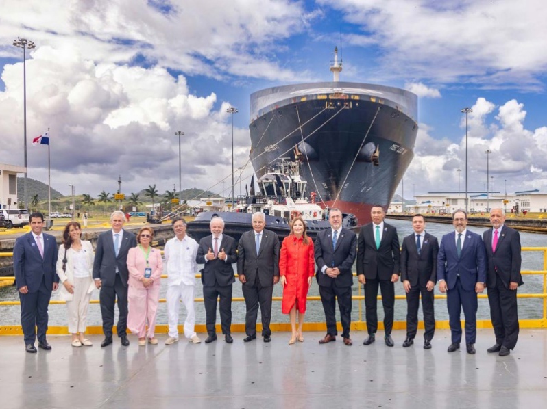 Las esclusas de Cocolí, inauguradas en 2016, fueron el punto escogido para la fotografía oficial del foro, coincidiendo con el décimo aniversario de esta infraestructura, que amplió la capacidad del Canal para atender el comercio marítimo internacional.