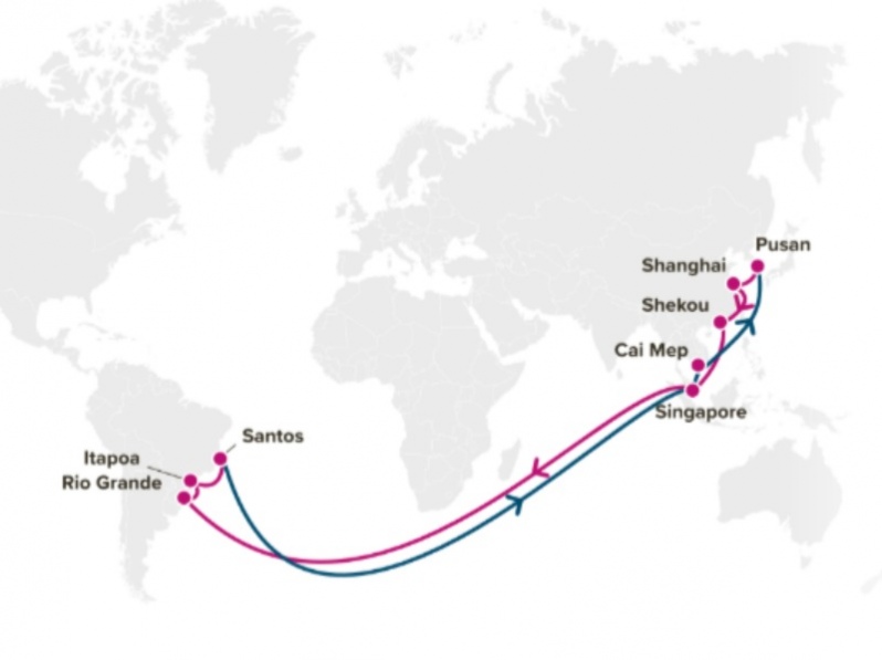 En la ruta hacia el este, la línea naviera informó que Shanghái será integrado como nuevo puerto de recalada, mientras que Hong Kong será removido del itinerario y reemplazado por Cai Mep.