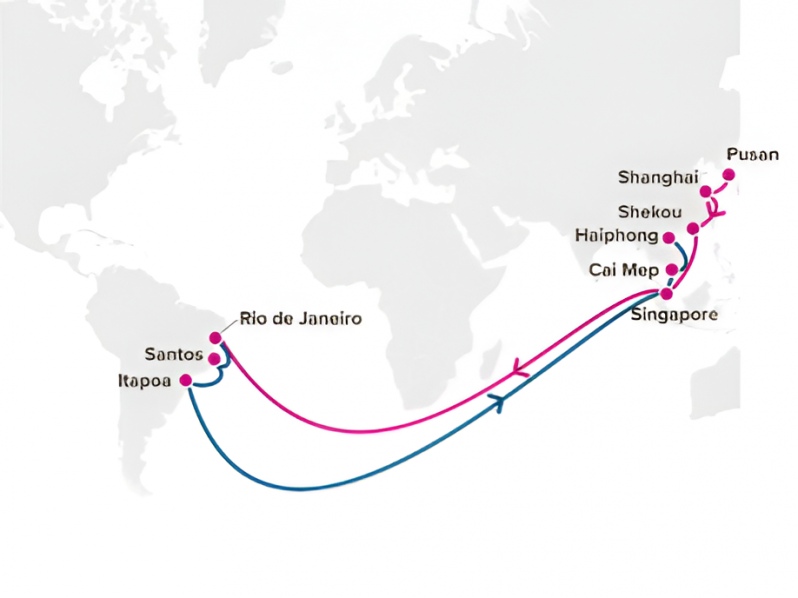 El itinerario mejorado del servicio ‘SX2’ será: Pusan - Shanghái - Shekou - Singapur - Río de Janeiro - Santos - Itapoá - Singapur - Cai Mep - Haiphong. Mientras que el buque asignado para iniciar el servicio mejorado será la M/V “Seattle Bridge 0103W”, con arribo previsto al puerto de Pusan el 20 de abril de 2026.