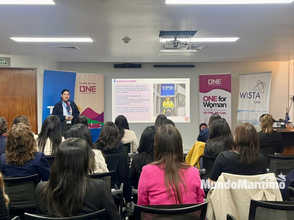 En el marco de las acciones que promueven la integración y el liderazgo femenino en el ámbito marítimo-portuario, el equipo “ONE for Woman” de Ocean Network Express (ONE) Chile impulsó un encuentro junto a las integrantes de “Mujeres a Bordo” de Terminal Pacífico Sur Valparaíso (TPS), instancia que además contó con la participación de representantes de WISTA Chile. La actividad, realizada el 3 de noviembre en las instalaciones de TPS y en la que estuvo presente MundoMaritimo, tuvo como objetivo fomentar el networking y el intercambio de buenas prácticas entre los grupos femeninos que promueven la equidad, la colaboración y el desarrollo profesional dentro del sector.