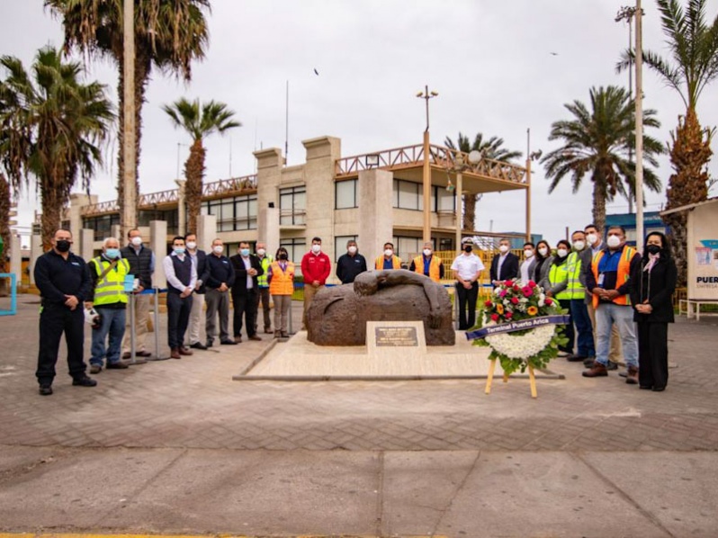 22 de Septiembre de 2021 Puerto de Arica entrega "Monumento Trabajadores Caídos" en conmemoración del Día del Trabajador Portuario Obra se instauró en memoria de los trabajadores que fallecieron en la construcción de la terminal portuaria