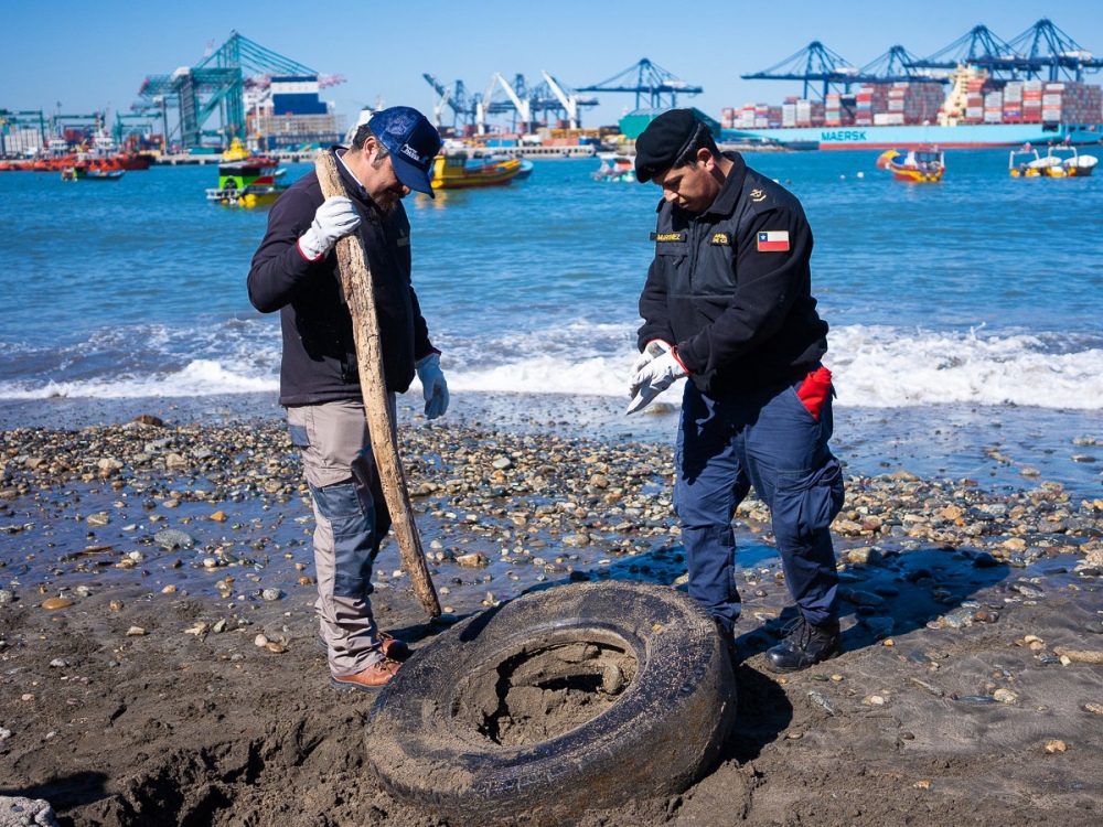 En total se eliminaron más de 6 metros cúbicos de basura de la playa y una tonelada que estaba en el fondo marino y que fue recuperada por buzos de la Armada y por la lancha de rescates del puerto, sumando alrededor de 7 toneladas.