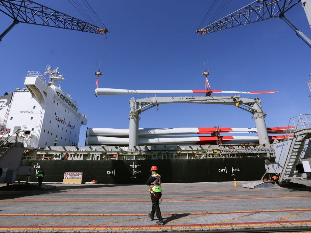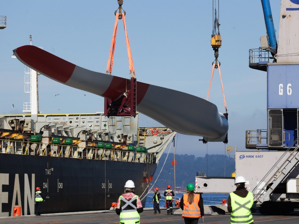 La operación se concretó con la primera recalada del buque “Birch Arrow” que transportó 60 aspas eólicas. Las piezas fueron descargadas y serán almacenadas al interior del terminal, desde donde continuarán viaje hacia su destino final.