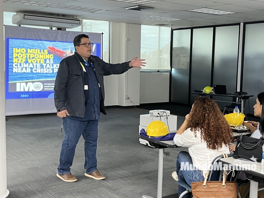 Posteriormente, los visitantes abordaron nuevamente el Panama Canal Railway para dirigirse, esta vez, al Puerto de Balboa de PPC, en el lado Pacífico del Canal, donde Juan Antonio Sucre ofreció una exposición en la que destacó que el recinto cuenta con 25 grúas pórtico (o STS) entre Panamax y Post-Panamax capaces de atender buques de hasta más de 18.000 TEUs, siendo el puerto de América Latina con mayor cantidad de este tipo de equipos. Detalló que el recinto que cuenta además con más de 3.500 conexiones para contenedores refrigerados.