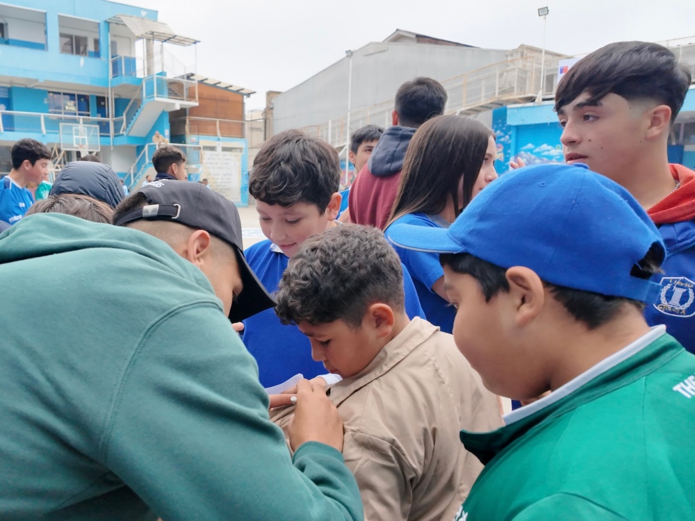 Lucas Avendaño, jugador de Santiago Wanderers, quien junto a Jorge Luna firmaron las camisetas y se sacaron fotos con todos los presentes, comentó: “Estoy muy feliz de estar aquí con todos los niños y darles la motivación para que cumplan sus sueños. Les diría que luchen por sus sueños, que trabajen y que le hagan caso a sus papás”.